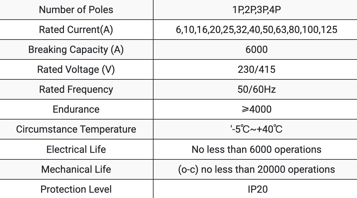 AC MCB 230/400Vミニチュア回路ブレーカーは、優れた性能と長期的な耐久性のために設計されています。 230/400V ACで動作するこのMCBは、1極から4極および電流定格の範囲の構成で6A〜125Aの範囲で利用できます。