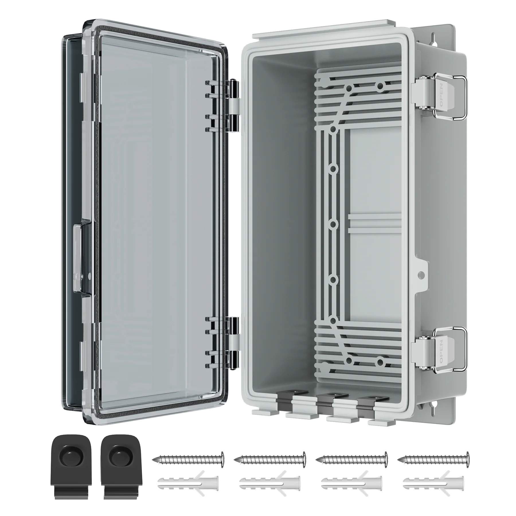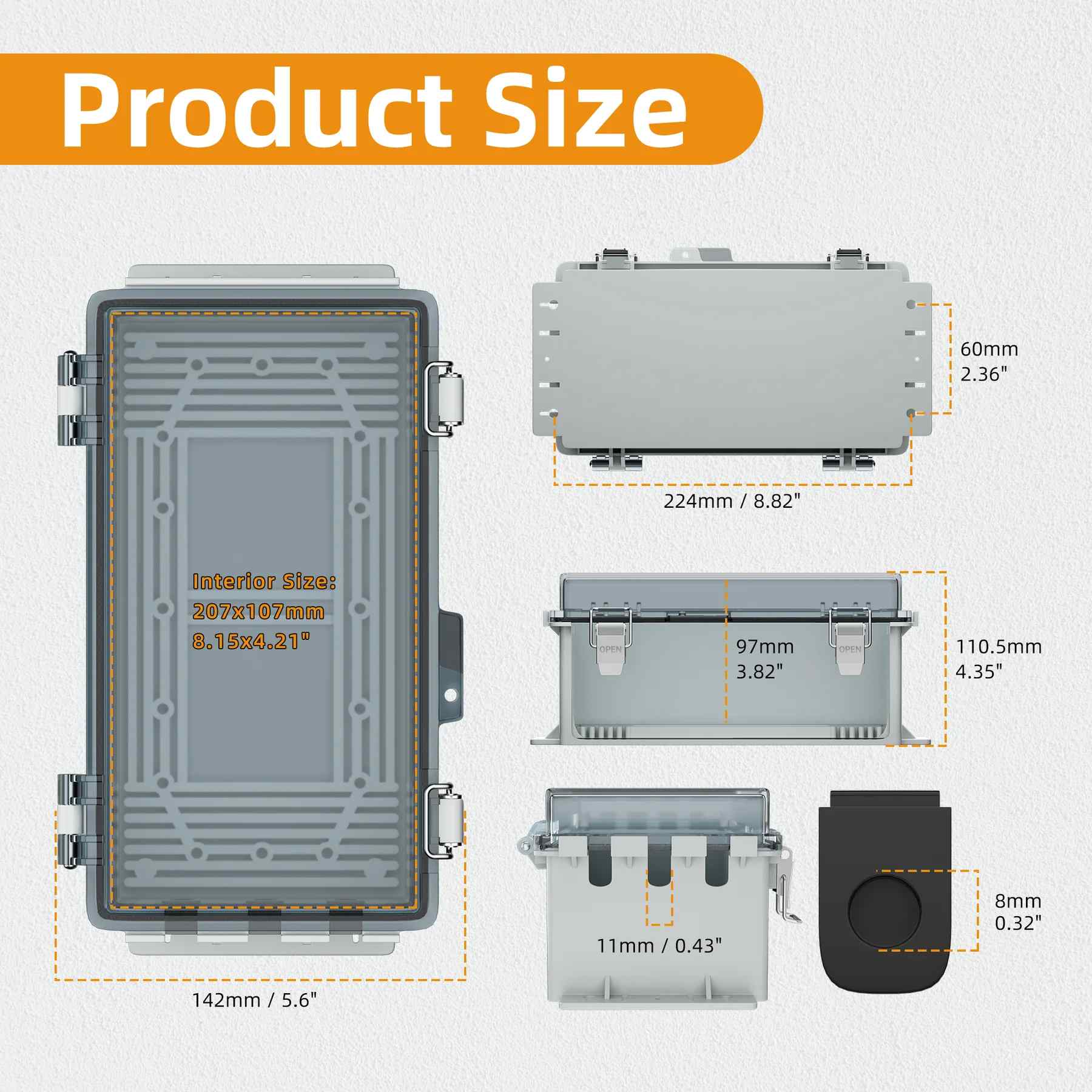 hinghinghinged透明なカバー】 - 頑丈なプラスチックの屋外延長コードボックスには、内部の電子機器の状態を簡単に監視できるヒンジ付きの透明なカバーがあります。 8.1 "x4.2" x3.8 "の広々とした内部寸法は、さまざまな機器に十分なスペースを提供します。