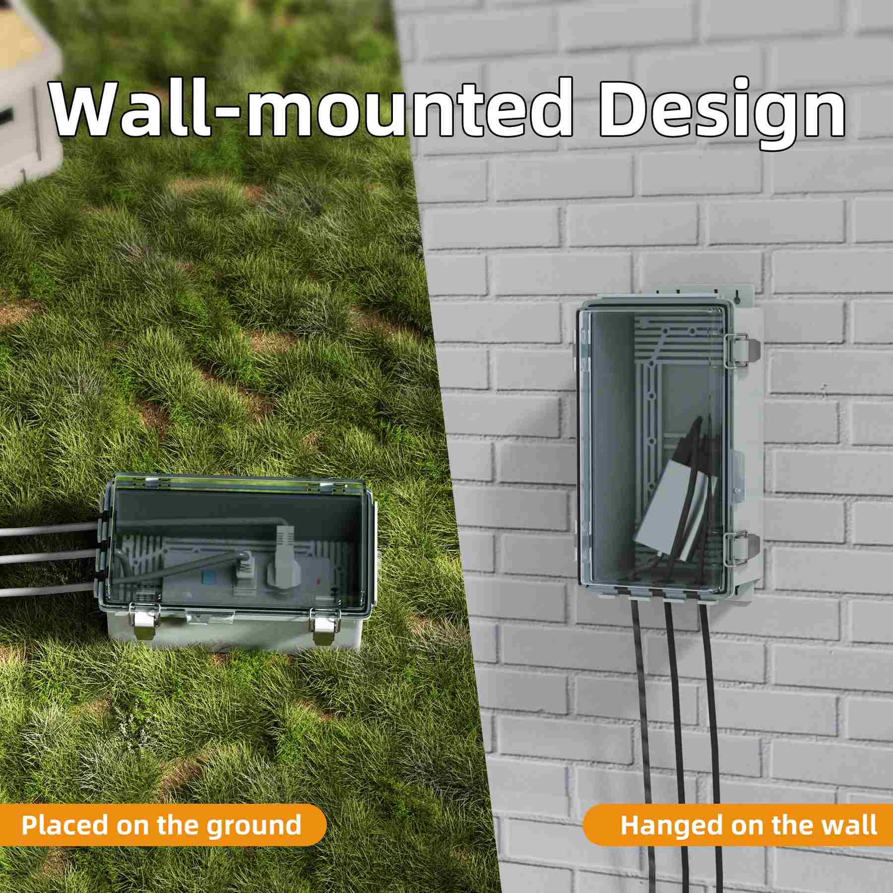 wall壁に取り付けられた設計】-防水延長コードボックスは、汎用性のために設計されており、壁や木に簡単に取り付けられます。その適応性のある設計により、必要な場所に便利なインストールが保証されます。