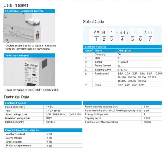 モデル:ZAB1-63ブランド:GreenwattType:ミニチュア回路ブレーカー(MCB)ポール:4(4極)定格電流:63アタリッピング曲線:Cカーバー電圧:400V ACSTANDARDADS:IEC60898-1コンプライアンスブレーキング容量:6000AAPPLICATIONS:COMMATIOL、industrial電気システムの提供信頼性と長いサービスライフエアーディンレールインストールコンパクトデザインディストリビューションボードでのスペース節約